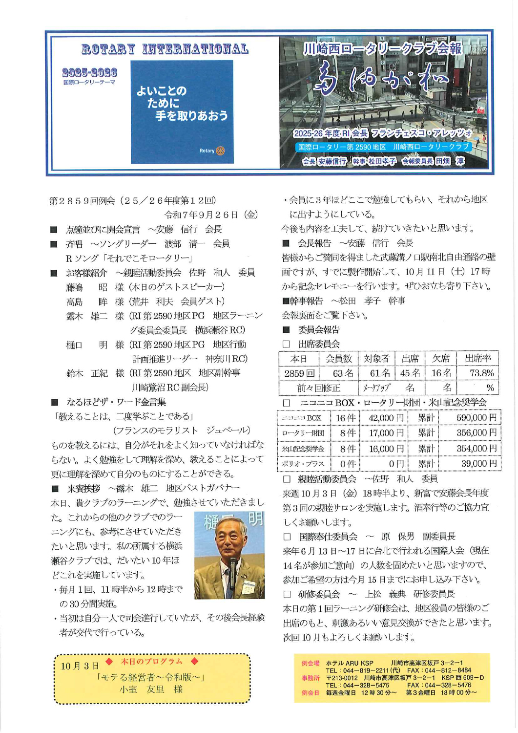 国際ロータリー第2590地区川崎西ロータリークラブ