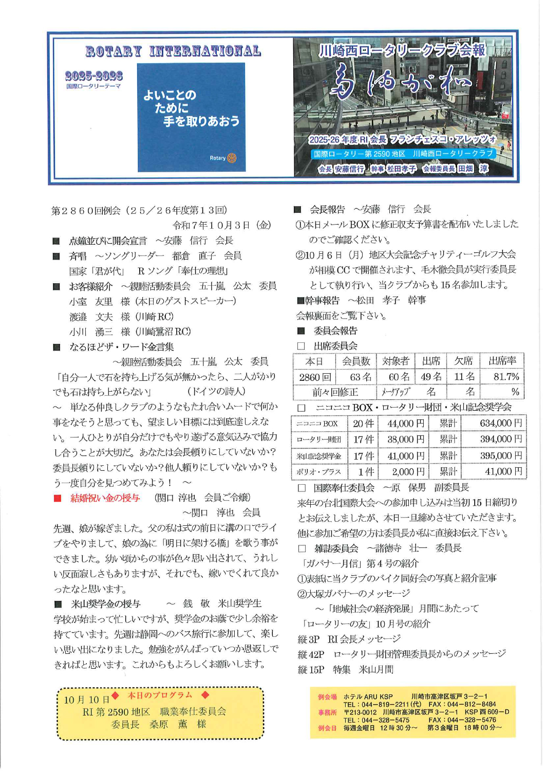 国際ロータリー第2590地区川崎西ロータリークラブ