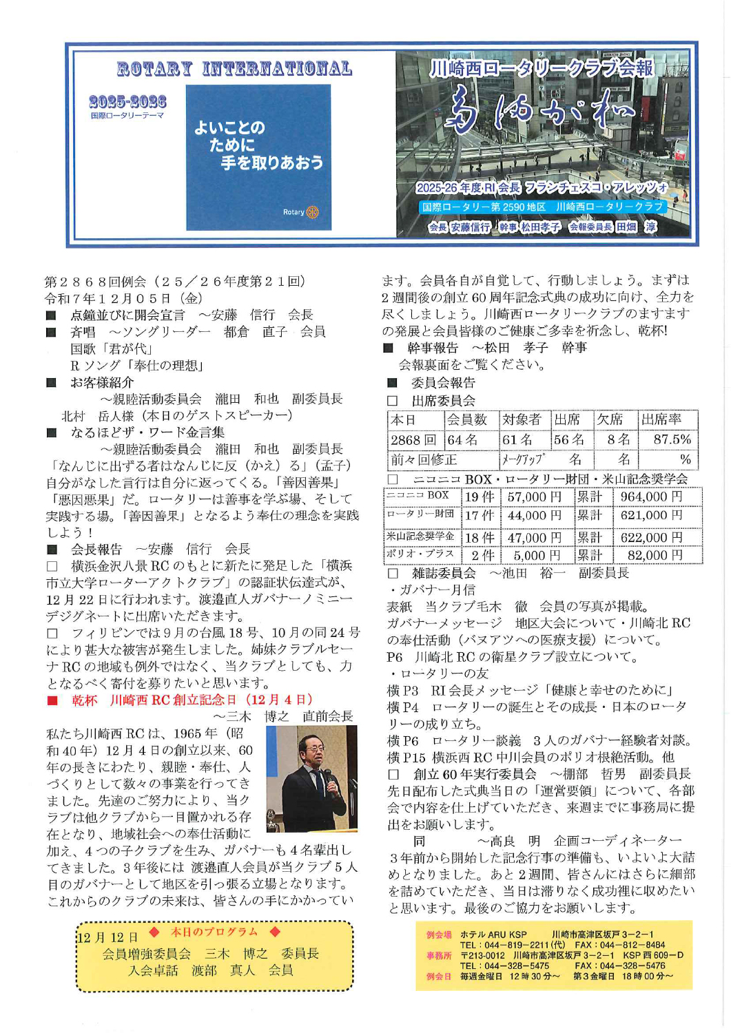 国際ロータリー第2590地区川崎西ロータリークラブ