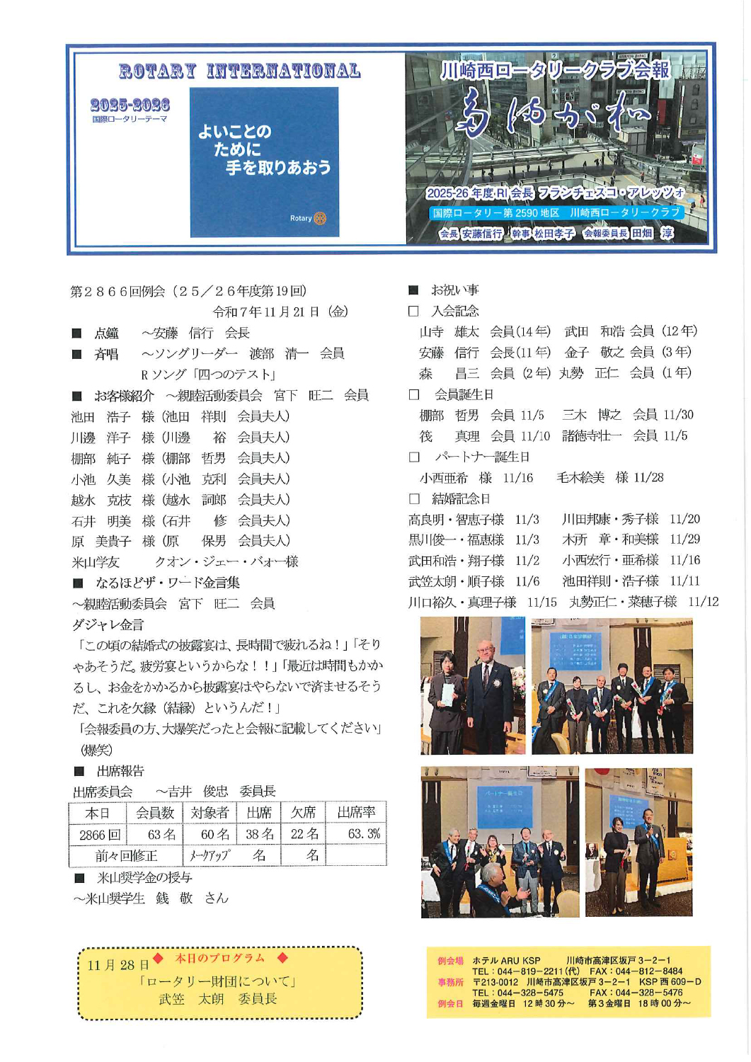 2025年11月14日の会報です。
