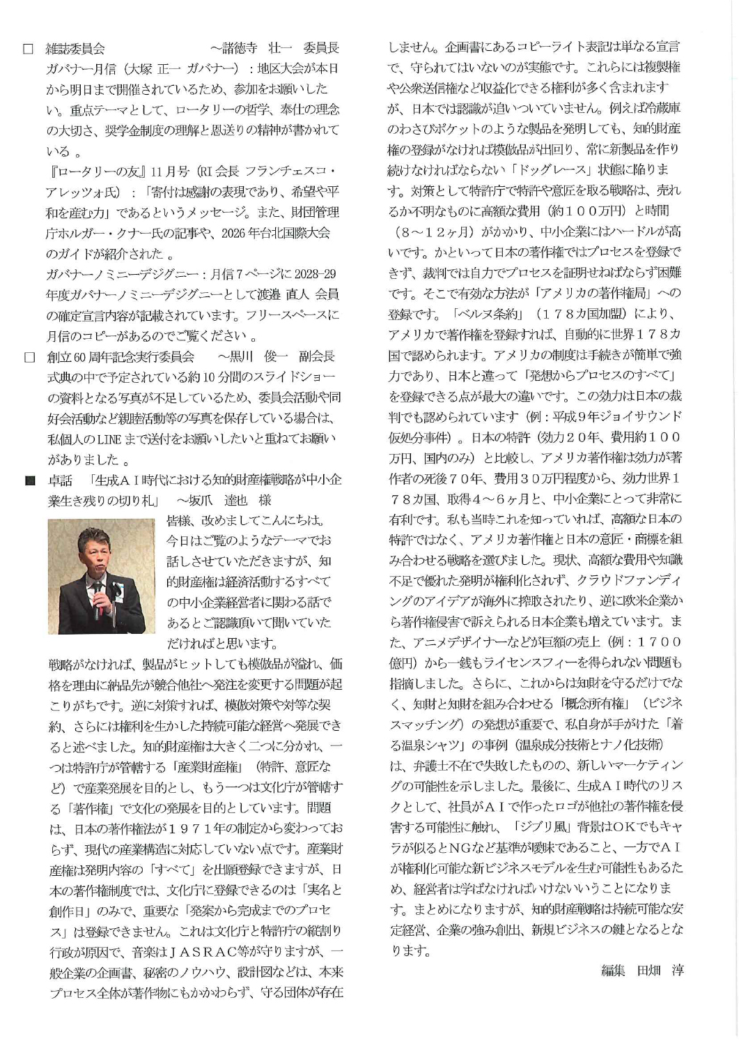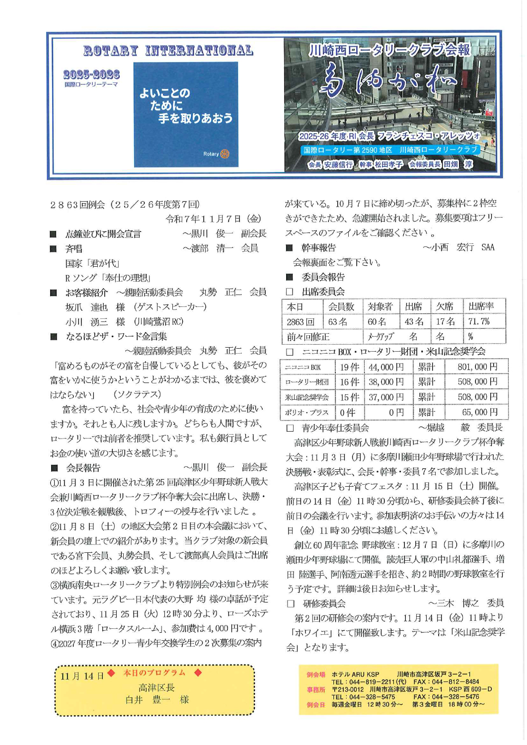 2025年11月7日の会報です。