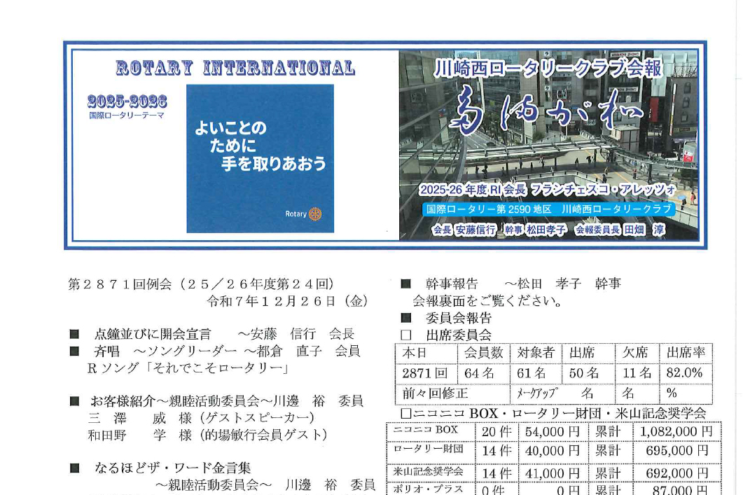【クラブ会報】12月26日 例会内容